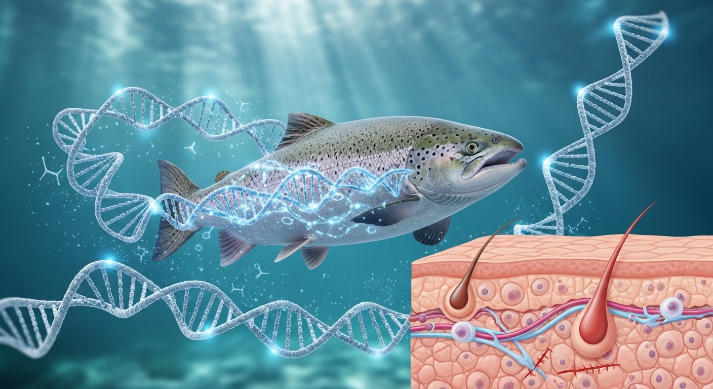 PDRN은 연어의 정소에서 추출한 DNA 조각으로, 우리 몸의 상처 회복과 조직 재생을 돕는 강력한 성분입니다. 놀랍게도 이 성분은 피부과에서 시술하는 일명 '연어 주사', 'DNA 주사', '리쥬란 힐러'의 주성분과 동일합니다.
